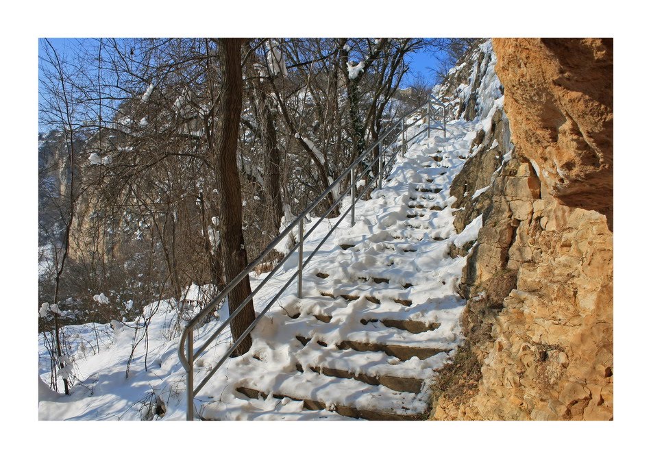 Стълбите, по които трябваше да се изкача за да достигна крепостта, бяха приятно осветени от обедното слънце, а стените окрасени с ледени шушулки (висулки)- кой как му хареса. Дори вятър си имаше, за да е пълна зимната идилия